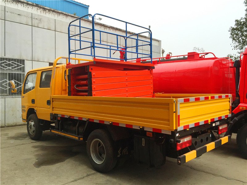 高空作業車采用國產、進口換向閥及液壓油缸,換向平衡,操作靈活方便,支腿與工作臂互鎖,支腿與工作臂互鎖,防止誤操作過位。對高空作業車有特殊要求的用戶請致電本公司,我們可以為用戶定單設計、改裝??杉友b電控系統。 高空作業車采用原裝底盤,平頭 ,可容納更過的作業人員。性能穩定可靠,主要用于電氣線路檢修、高空作業清洗、樹木剪枝等高空作業使用。